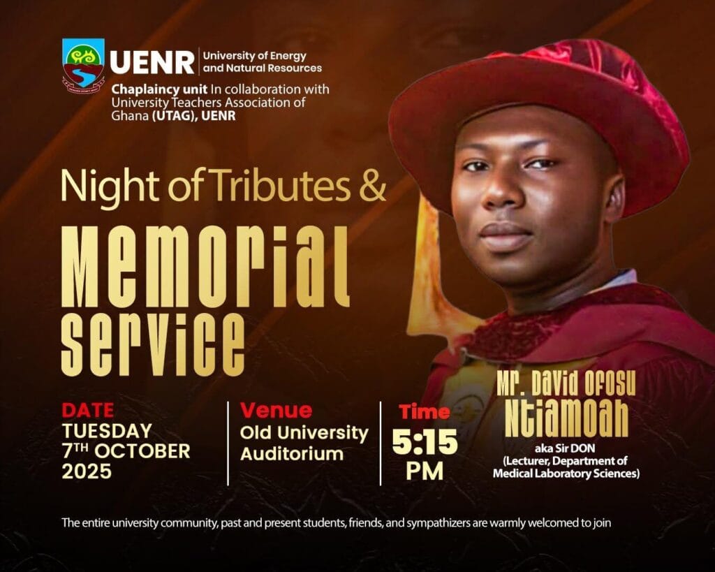 This is a kind reminder to the University Community of the Night of Tributes and MemorialService in honor of our late colleague, Mr. David Ofosu Ntiamoah (aka Sir DON), Lecturer, Department of Medical Laboratory Sciences.
